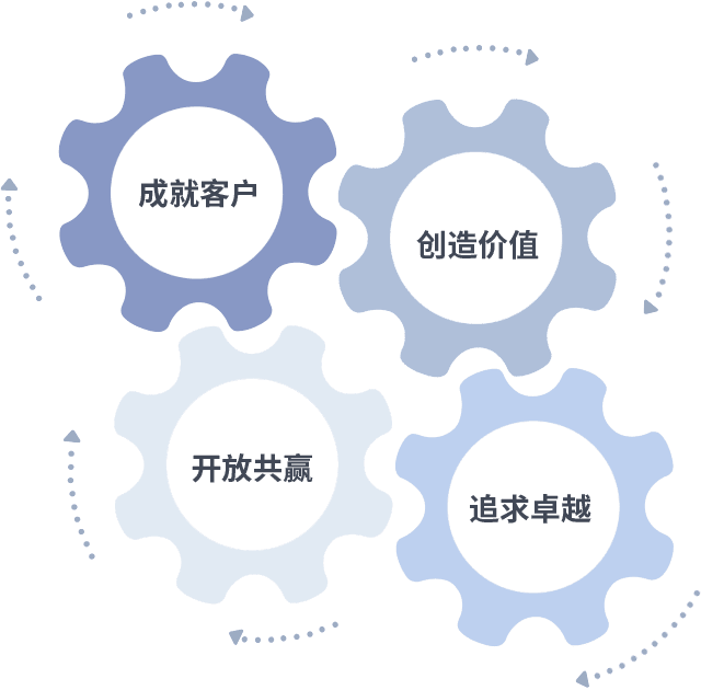 成就客户是一切决策的出发点,,,,创造价值是衡量所有工作的标准,,追求卓越是CG电子做事做人的态度,,,开放共赢是CG电子的格局也是最终的结果。。。。价值观的齿轮环环相扣,,推动着组织里的每个人不断向前。。